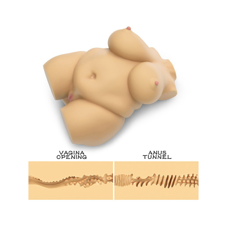 Masturbatoren er laget av et realistisk, hudvennlig materiale som etterligner menneskelig hud, og gir en ekstremt realistisk og deilig opplevelse. Det føles som ekte hud, og gir deg en autentisk følelse hver gang. Vaginaåpningen er full av deilig tekstur, nupper og riller og analtunnelen har et eget spennende mønster. Masturbatoren har deilige former og ta tak i!