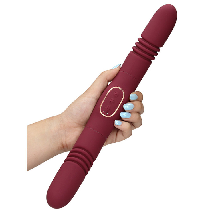 Velg hvilken ende du vil bruke, og la den automatiske thrustingen gjøre jobben. Vibratoren gir dype, rytmiske støt og deilige vibrasjoner samtidig, slik at du får maksimal stimulering uten å løfte en finger.