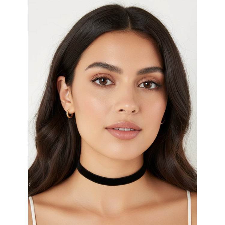 Enkel, elegant og alltid riktig, denne sorte velurchokeren gir antrekket ditt en umiddelbar edge. Den rene, minimalistiske silhuetten legger seg mykt rundt halsen og skaper et stilrent uttrykk som fungerer like godt til hverdags som til fest, fotoshoots, klubbkvelder eller en sensuell kveld med undertøy.