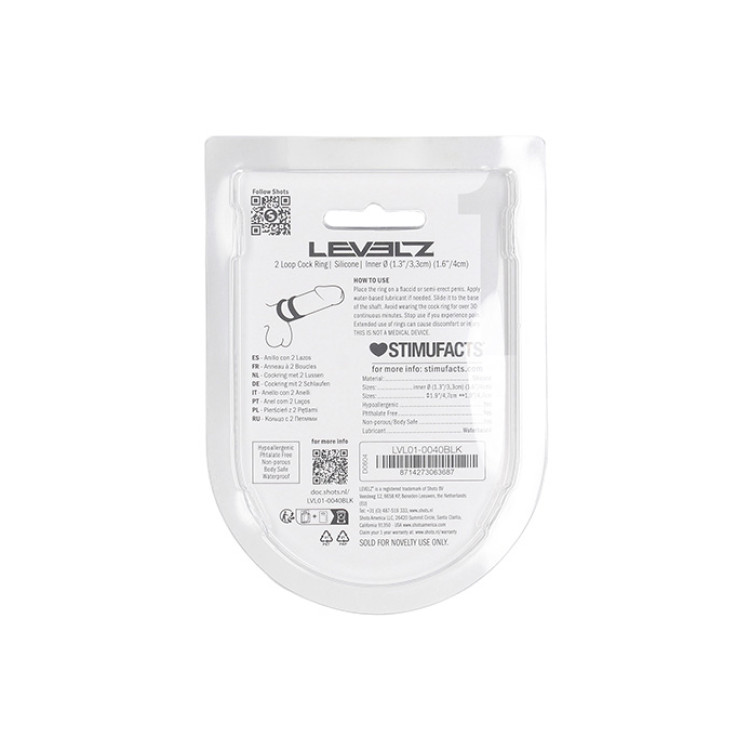 Levelz Double Loop Penisring Sort er en fleksibel penisring designet for deg som ønsker mer kontroll, bedre stabilitet og økt intensitet. Den doble penisringen gir ekstra grep rundt skaftet og pungen.