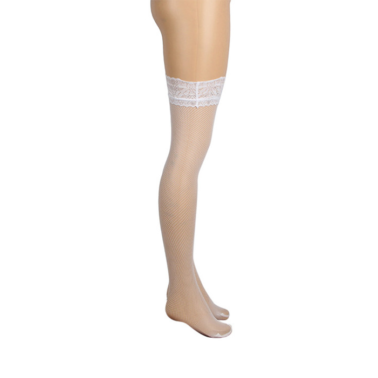 Gnist - Nettingstrømper med Blondekant - Hvit