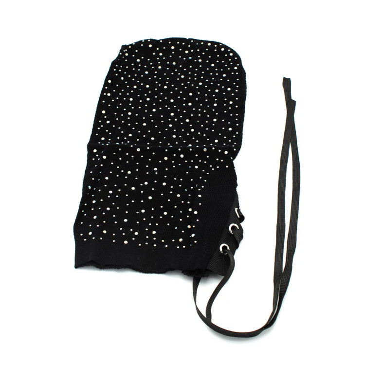 Lace Hood Shiny DiamondsSort, tettsittende maske med danderte stener. Masken har ikke åpning for øyne eller munn, men nettingmønsteret gjør det mulig å se/puste gjennom materialet.