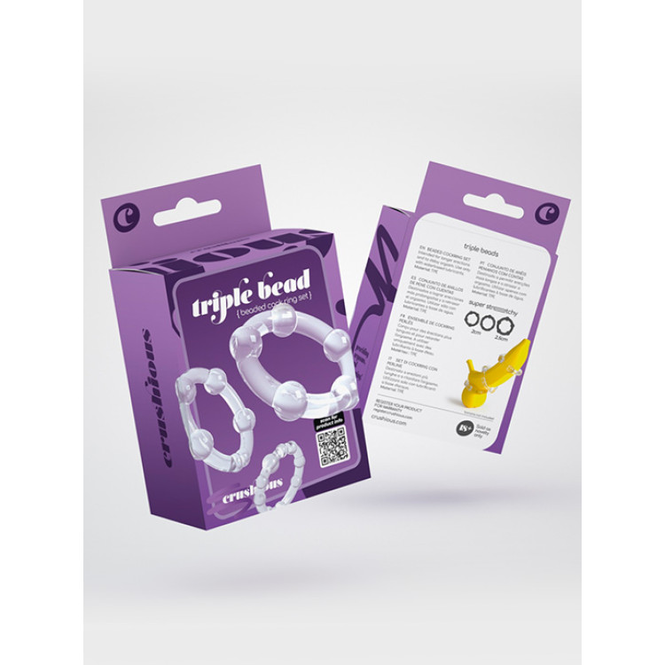 Tre ringer, mange muligheter! Dette settet fra Crushious er laget for deg som vil ha mer trykk, mer kontroll og mer nytelse. Ringene er laget i fleksibelt og kroppssikkert TPE-materiale som gir perfekt grep rundt penis og/eller pung – enten du bruker én ring alene, eller kombinerer flere for en mer intens følelse.