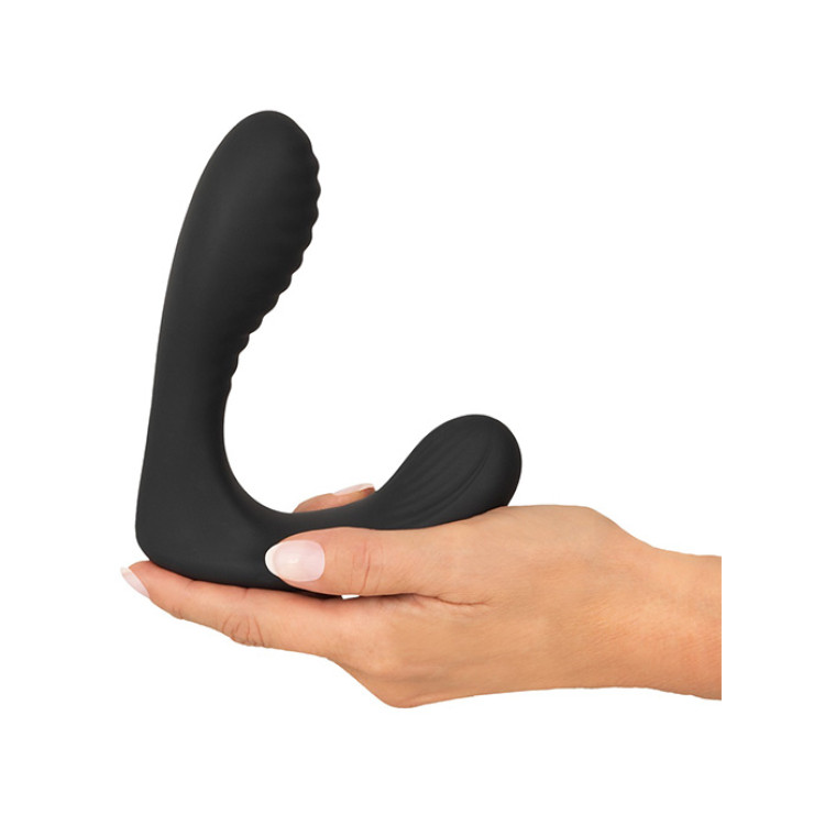Den fleksible silikonkroppen gjør at pluggen tilpasser seg perfekt, og den myke overflaten glir behagelig på plass med et godt glidemiddel. Den kraftige motoren i pluggen gir dype, rumlende vibrasjoner, mens en ekstra motor i armen gir separat stimulering av perineum. Begge motorene har 7 programmer hver og kan styres uavhengig av hverandre slik at du kan nyte enten leketøyet direkte eller via fjernkontrollen med rekkevidde på opptil 6 meter.