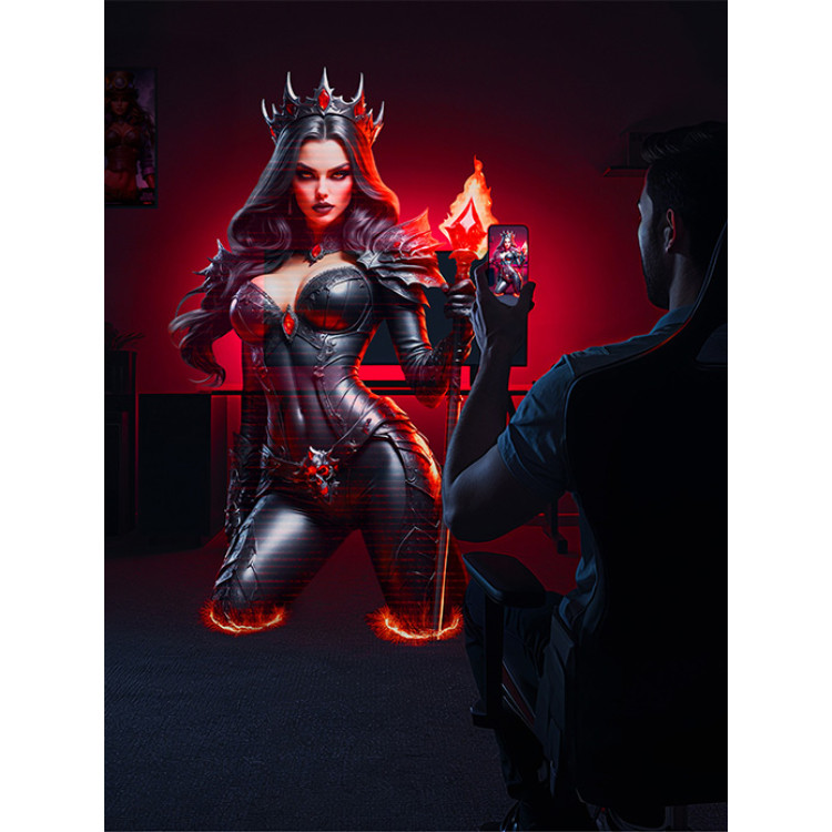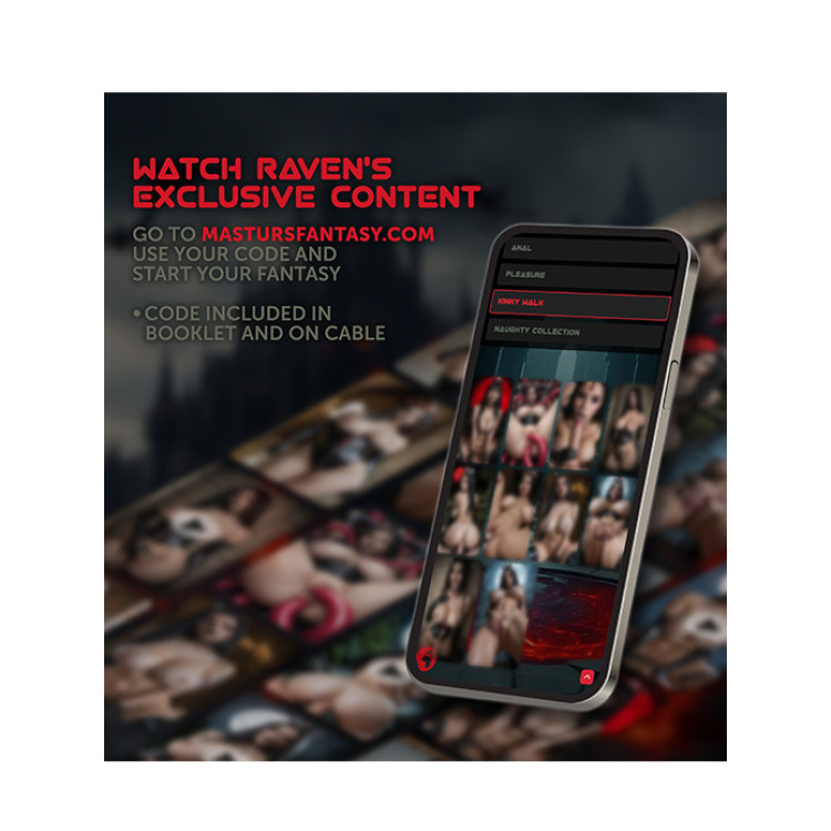 Når du skanner QR kodene som følger med i esken, åpnes portalen til Raven sitt domene. Gjennom augmented reality kan hun tre frem i rommet ditt, mørk og nær, med blikket rettet mot deg. Eller du kan velge en sensuell film som trekker deg inn i Noxmere, et rike av vridde trær, svarte slott og lek som aldri er uskyldig. AR og video gjør Raven til mer enn en idé, hun blir en stemning du kan gå inn i når du vil.